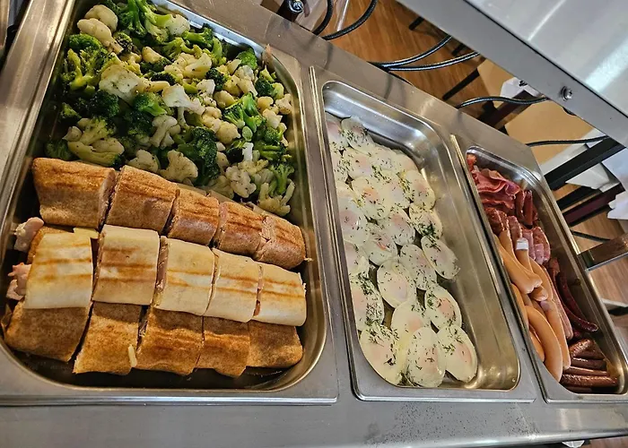 Guests can try European dishes at Tawerna w sieciach located within a few blocks of Helios Aparthotel.